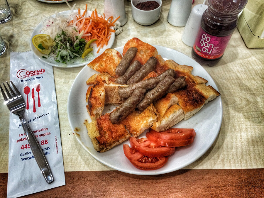Ödemiş köftesi severler için İzmir'de gidilmesi gereken tek mekan... Meşhur Ödemiş Köftecisi Ersin'in Yeri'ni not edin. Sadece köftesiyle değil, salatasıyla, cacığıyla ve piyazıyla da yediklerinizin lezzetini aklınıza kazıyacak bu köfteci bundan böyle İzmir'e her geldiğinizde uğradığınız ilk yer olacak.
