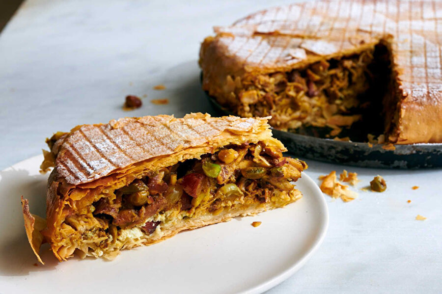 Fas’ın renkli ve baharatlı mutfağından çıkan Pastil, genellikle badem, tarçın ve pudra şekeri ile hazırlanıyor. Hem tatlı hem de tuzlu seçenekleri olan bu tarif, Fas mutfağının zenginliğini adeta gözler önüne seriyor.