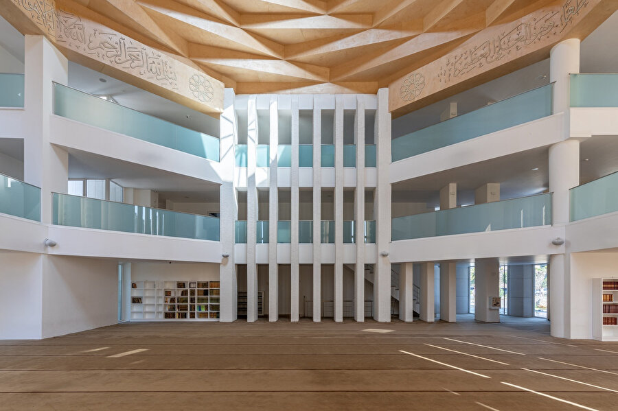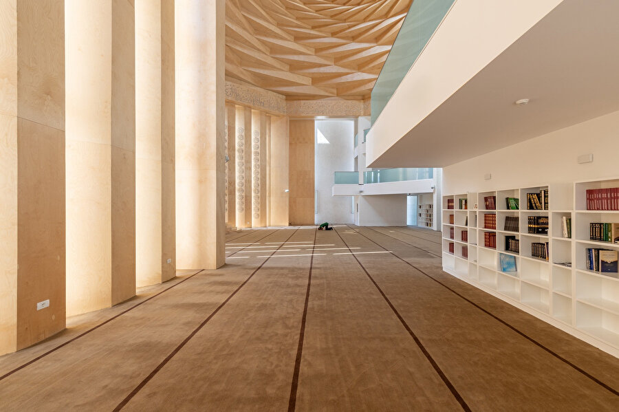 Camide ibadet alanlarının yanı sıra derslikler, ofisler, konferans salonu ve bir kütüphane de bulunuyor.