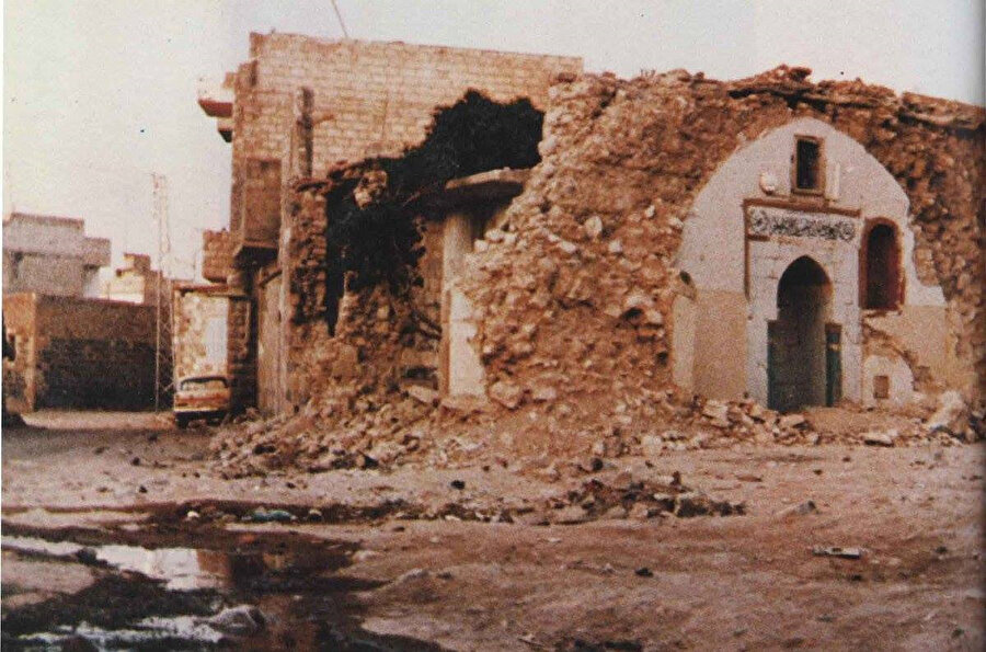 Kentteki tarihî eserlerin katliam öncesi durumunu ve sonrasındaki yıkımını gösteren görseller paylaşılıyor.