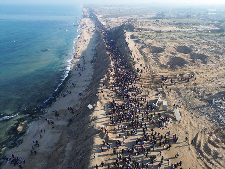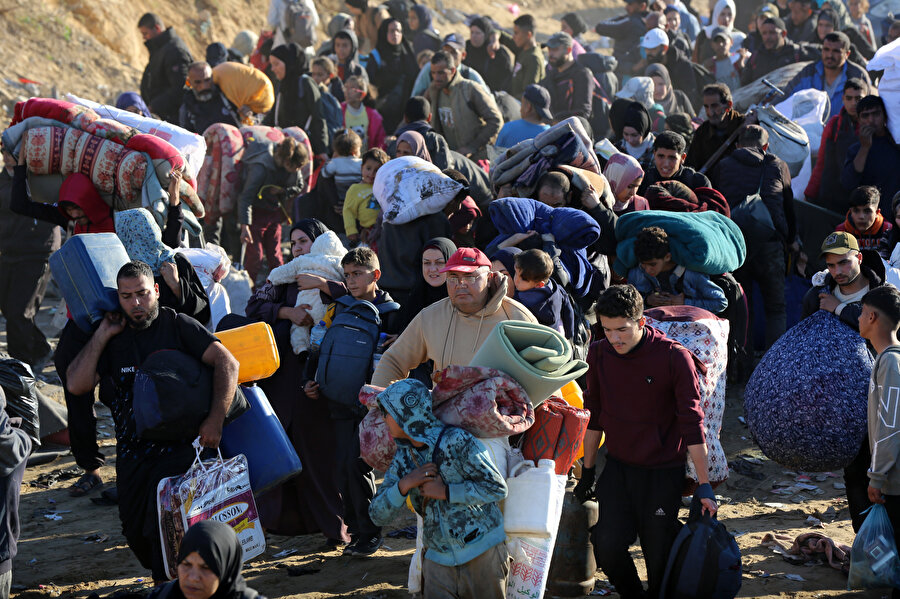 - İsrail'in Gazze Şeridinin kuzeyi ve güneyini ayıran Netzarim Koridoru'ndan dün Filistinlilerin geçişine izin vereceğinin açıklanmasının ardından, binlerce Filistinli yanlarına alabildiği eşyalarla Reşid Caddesi'nden kuzeye doğru yürümeye başladı.
