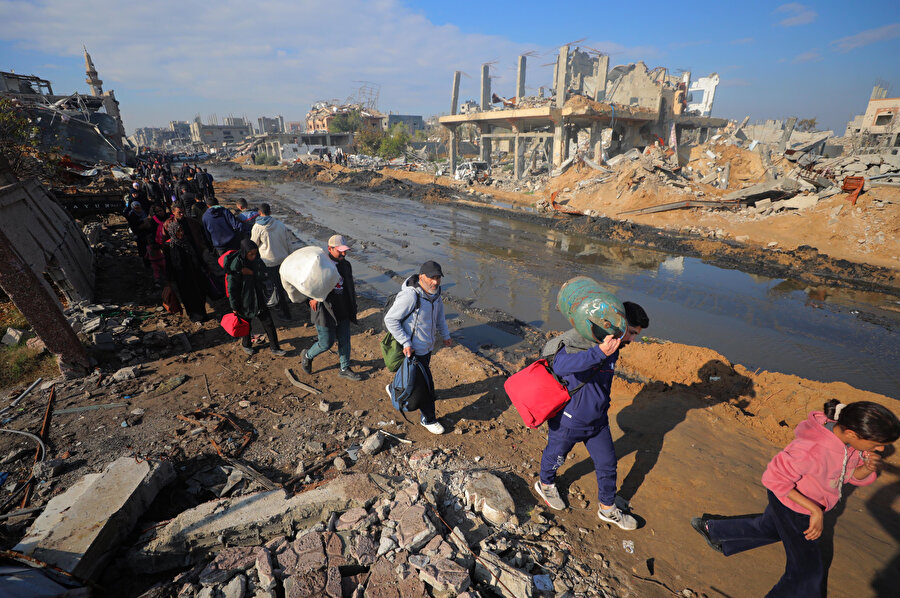 Eve dönüş: Filistinliler yürüyerek Kuzey Gazze'deki evlerine dönüyor