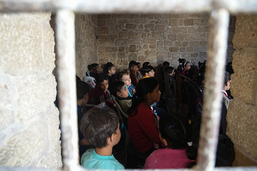Gazze'deki Eyyûbîler döneminden kalma taş bina, 2 yıldır eğitime kapalı kalmasının ardından öğrenciler için yeniden hizmete girdi.