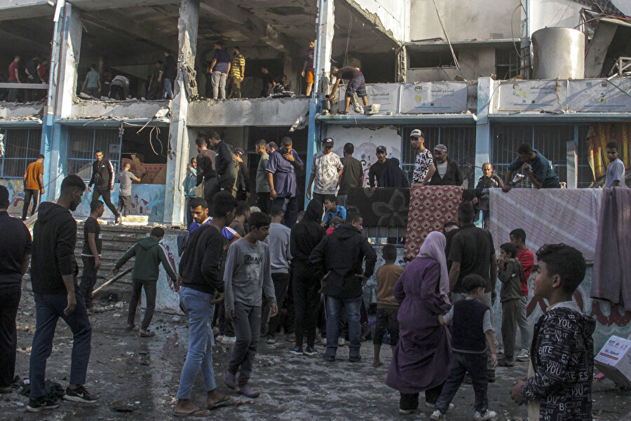 Yaklaşık 2,3 milyon nüfuslu Gazze Şeridi'nde saldırılarıyla 2 milyon Filistinliyi yerinden eden İsrail, birçok kez göçe zorladığı Filistinlilerin sığındığı okulları da bombaladı.