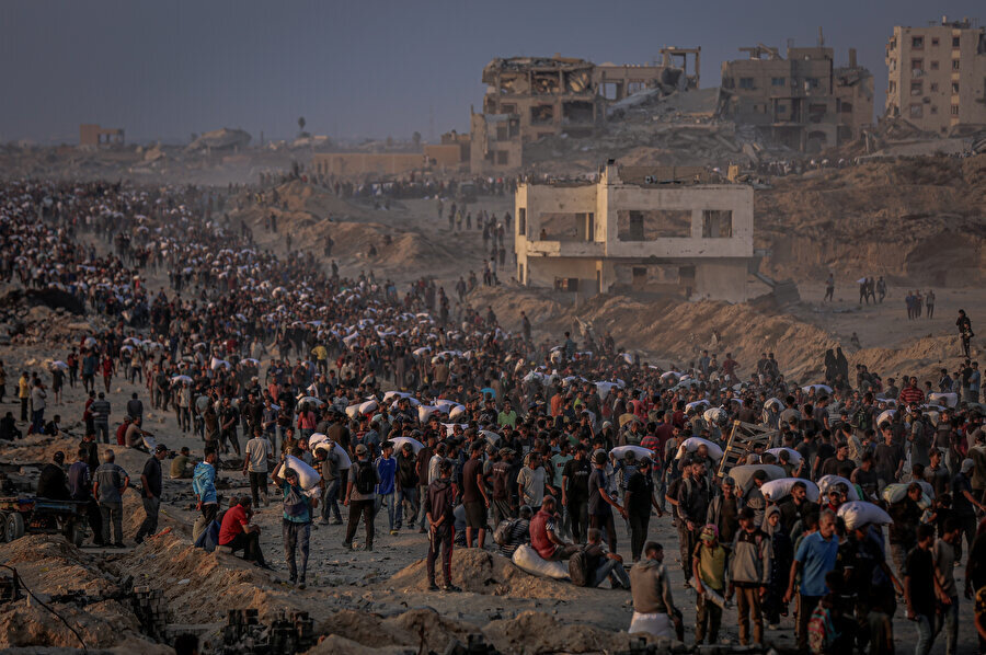 Savaşın ekonomik ve sosyal etkileri de yıkıcı. Un fiyatlarının düştüğü gibi IDF kaynaklarından gelen bilgiler, sanki Gazze’de her şey yolundaymış izlenimi vermeye çalışsa da, sahadan gelen bilgiler bunun tam tersini gösteriyor. Uluslararası Kızılhaç Komitesi, bölgede açlık ve susuzluğun ciddi boyutlara ulaştığını bildirdi. Elektrik ve sağlık hizmetlerine erişim neredeyse imkânsız hale geldi. Bu koşullarda yardım almak için toplanan insanların, yardımın kendisinden önce ölümle karşılaşmaları, krizin en dramatik yönlerinden biri.
