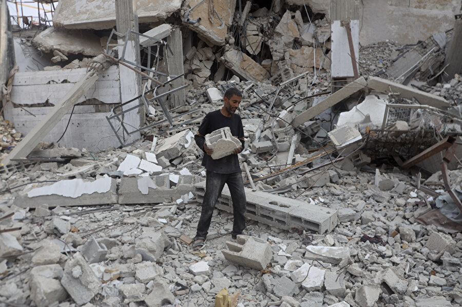 İsrail saldırılarında evleri yıkılan Gazzeliler, enkazdan topladıkları kullanılabilir malzemelerle barınma alanlarını yeniden inşa ediyor. Saldırılarda büyük yıkım yaşayan Gazzeliler, inşaat malzemesi yetersizliği nedeniyle enkazlardan çıkardıkları demir, taş ve tahta parçalarını değerlendiriyor.
