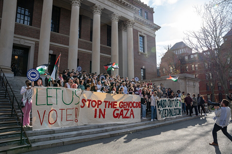 Okullarının, Filistin işgalini ve Gazze'deki soykırımı destekleyen şirketlere devam eden finansal yatırımlarını protesto ettiler.