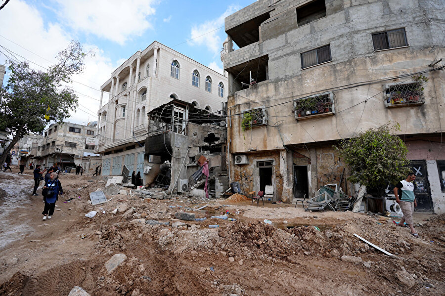 - İsrail güçlerine eşlik eden buldozerler, kentteki ve kamptaki altyapıyı tahrip ediyor, önüne çıkan araçları sürüklüyor.