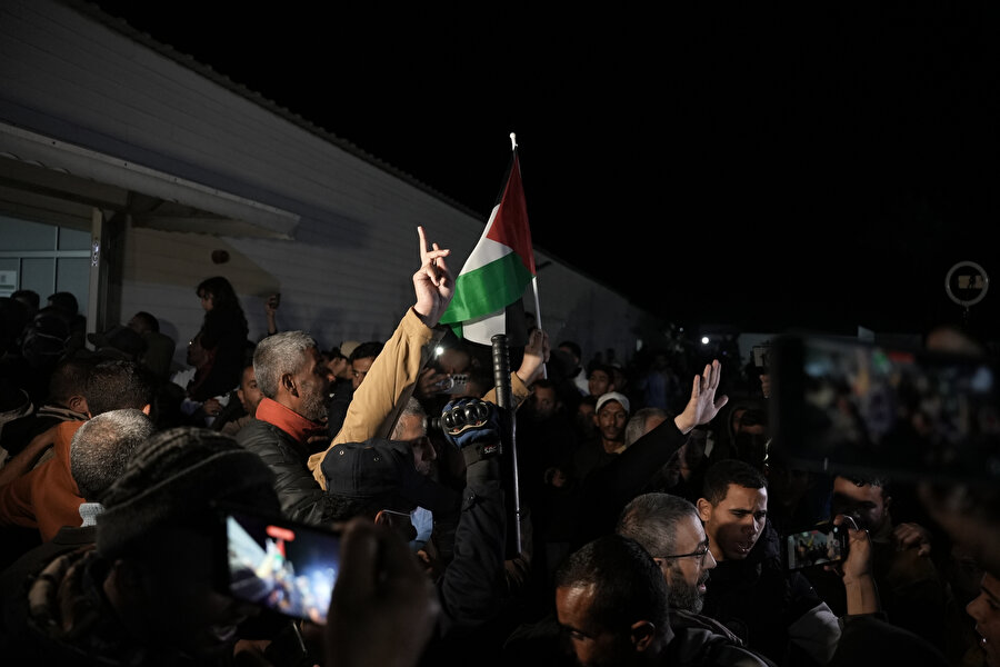İsrail’in esir takasının 3’üncü turunda Ofer Hapishanesi’nden serbest bıraktığı 110 Filistinli mahkum, Filistinliler tarafından coşkuyla karşılandı. Mahkumlar halk tarafından omuzlarda taşınırken, çok sayıda kişi mahkumlarla kucaklaşmak için birbiriyle yarıştı. Anlaşma kapsamında ayrıca 9 mahkumun Gazze Şeridi’ne geçişine izin verildi.