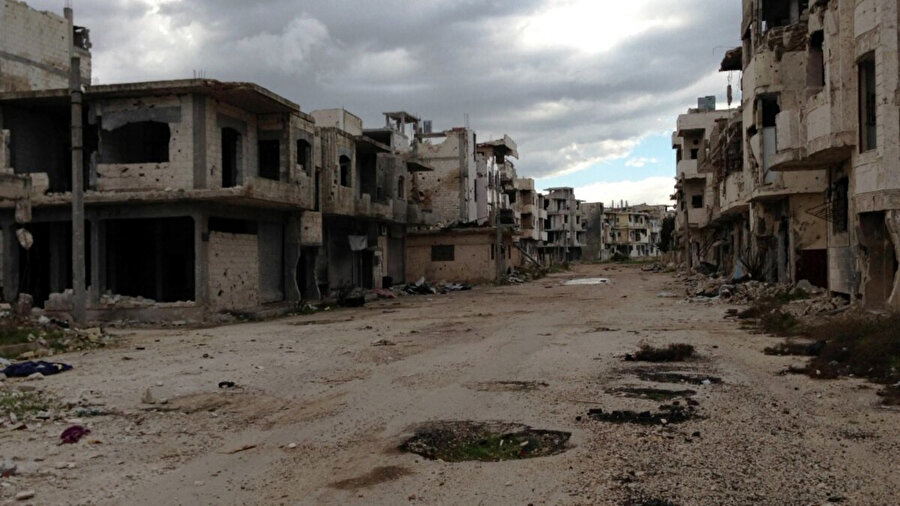 SNHR'nin raporuna göre, rejim güçlerinin havadan ve karadan düzenlediği saldırılar ve bombalamalarda El-Asida, Es Sehhane, El-Kilayniyye, Ez Zenbak , El-Hayriyya ve El Başuriyye gibi semtler, yoğun şekilde hedef alınırken kent merkezinin yaklaşık üçte biri yerle bir oldu.