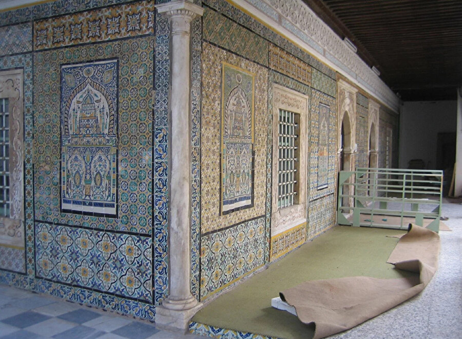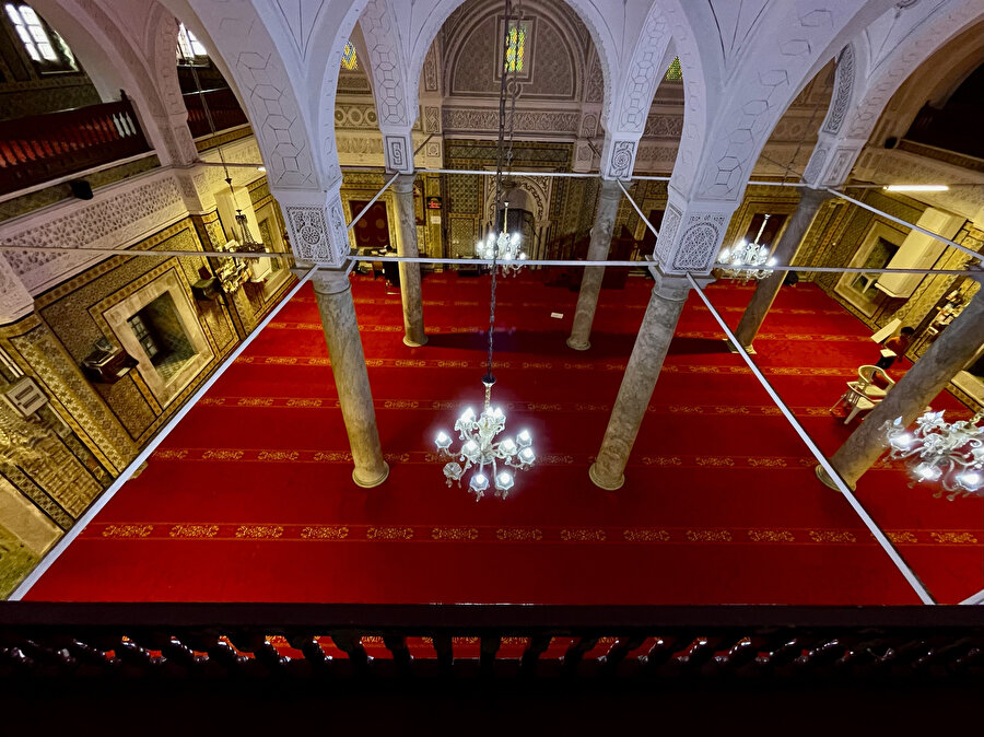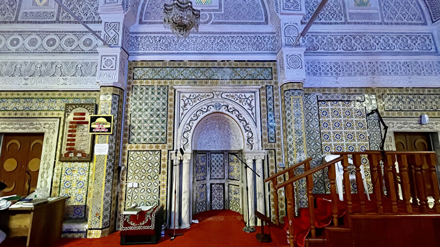 "Cami 16 kubbelidir. Mihrabın tam karşısında bizim 'Südde' dediğimiz önemli misafirler için ayrılan bir bölüm vardır." diyen Ebu Salim, caminin çini işlemlerin yoğun kullanılması açısından özel bir yeri olduğunu vurguladı.