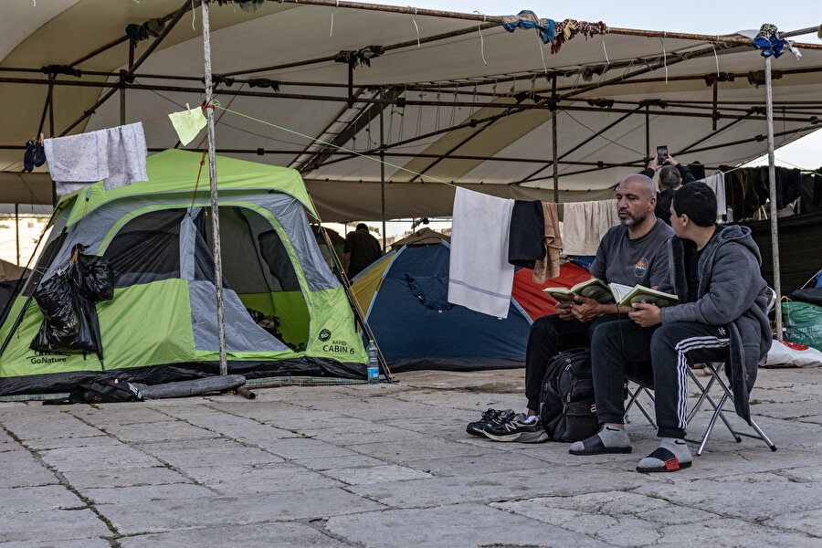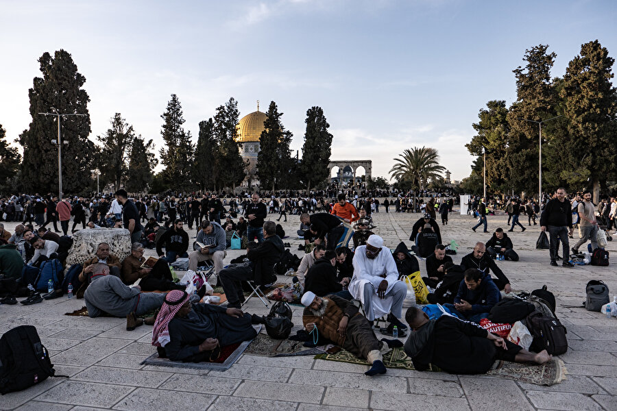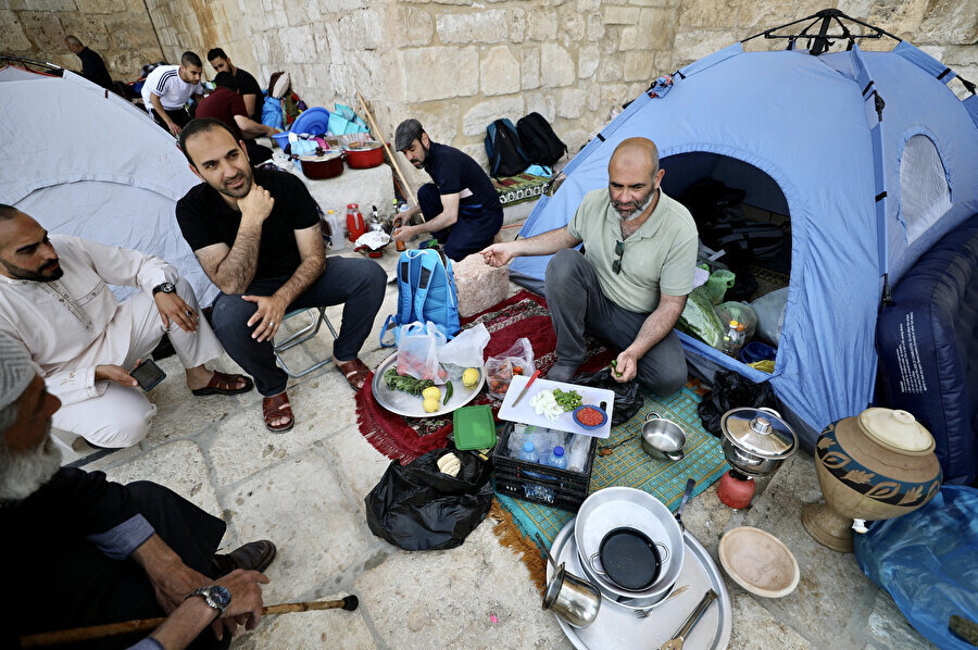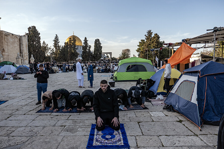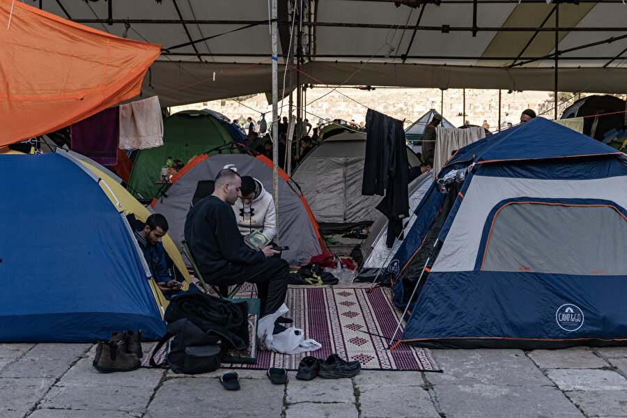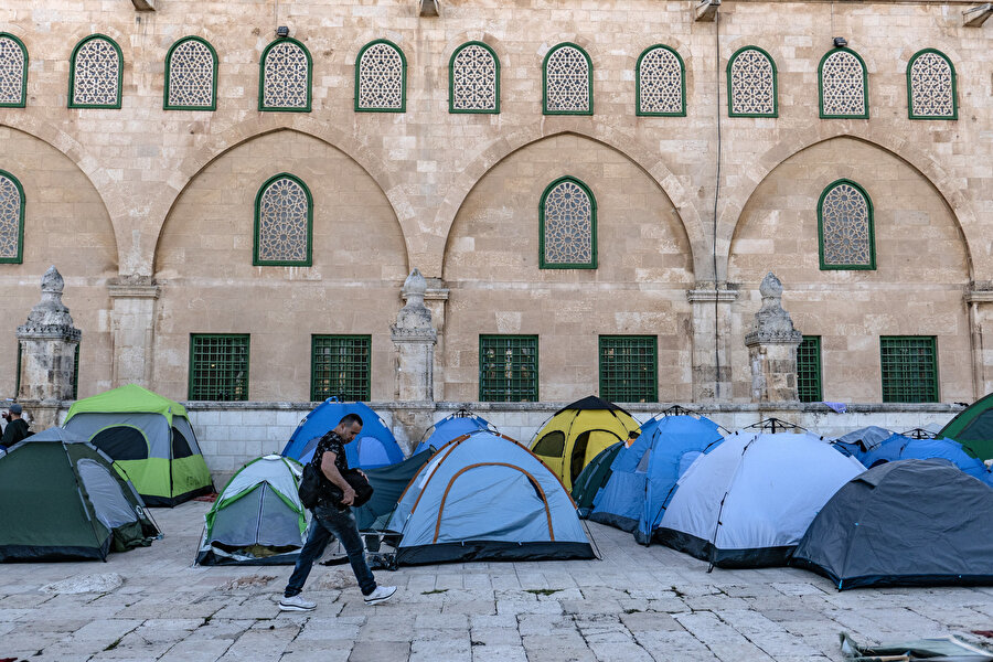Ramazan ayının son 10 gününü Mescid-i Aksâ'nın manevî ikliminde itikafa girerek geçirmek isteyen çok sayıda Müslümanın kutsal mabedin avlu ve bahçelerinde çadır kurdu.