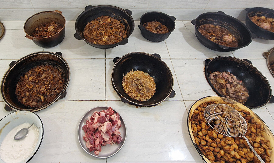 Pilavın hazırlanmasında pirinç, havuç, soğan ve et başlıca malzemeler sayılırken, nohut, kuş üzümü, kimyon, safran, yumurta, bazen de isteğe bağlı olarak ayva, ceviz, sarımsak ve çeşitli baharatlar ilave edilebiliyor.