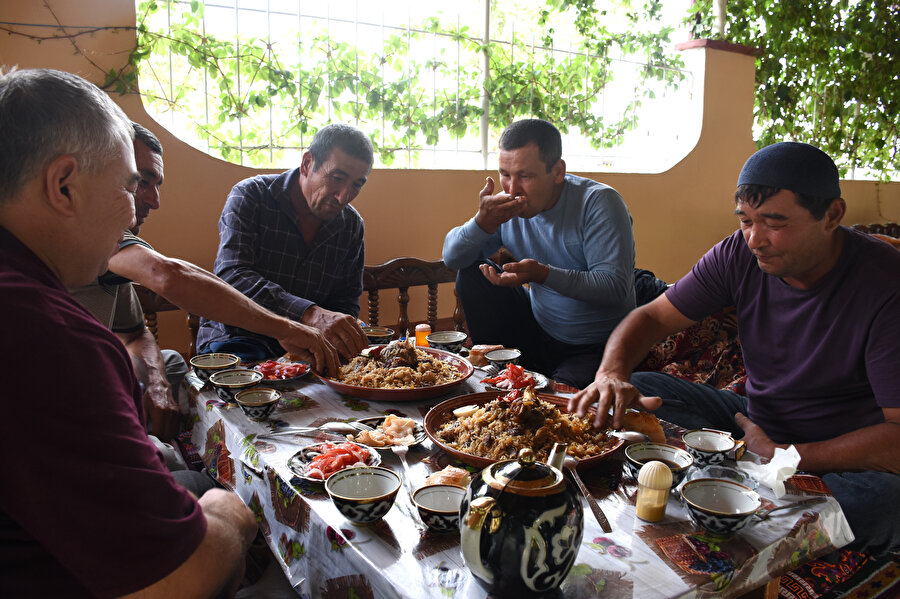 Özbek ailelerde, haftada en az bir kez hazırlanan pilav, aile fertlerini aynı sofranın etrafında bir araya getiriyor. Özbek erkekler de dostları ile bir arada pilav yiyebilmek için sipariş usulü pilav hazırlanan çayhaneleri tercih ediyor.