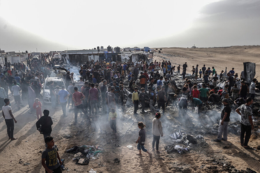 - İsrail savaş uçaklarının, 26 Mayıs'ta Refah'ın Tel es-Sultan Mahallesi'ndeki UNRWA depolarının yakınındaki bölgede yerinden edilmiş Filistinlilerin kaldığı bir çadır kampı hedef alması sonucu, çoğu yanarak can veren 45 Filistinli hayatını kaybetti, 249'u da yaralandı.