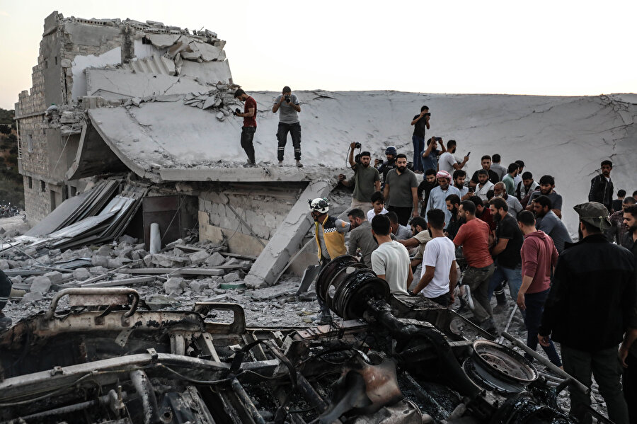 Rus savaş uçakları, İdlib'in Besnkul, Cuzef, Kibeyne Tepeleri, Betinte, Şeyh Bahir, Ruveyse, Kafriden, Aynl el-Zarka, Kerkur, Arapsaid ve Bara bölgelerinde rejim karşıtı silahlı grup HTŞ'ye ait 26 noktayı hedef aldı.