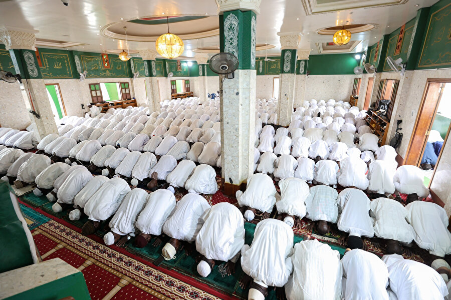 Gueye, camide diğer ibadethanelerden farklı olarak cuma namazının beyazlar içinde eda edildiğinin altını çizerek "Babama rüyasında cuma namazının beyazlar içinde eda edilmesi tavsiye edilmiş. O nedenle cuma namazını caminin içinde kılmak isteyenlerin beyaz bir kaftan giymesi gerekiyor. Kaftanı olmayanlara da cami girişinde ödünç veriyoruz." diye konuştu.