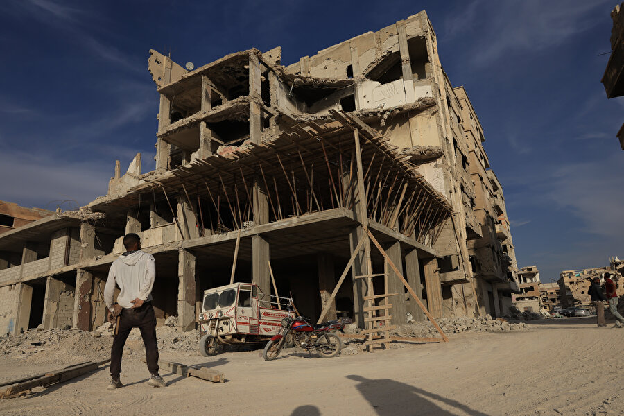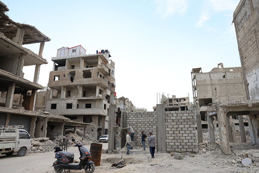 Başkent Şam'da, maddi imkansızlıklar nedeniyle devlet desteği olmadan yaşamlarını sürdüren birçok Suriyeli, yıkılan evlerine geri dönerek kendi imkanlarıyla yeniden inşa çalışmalarına başladı.