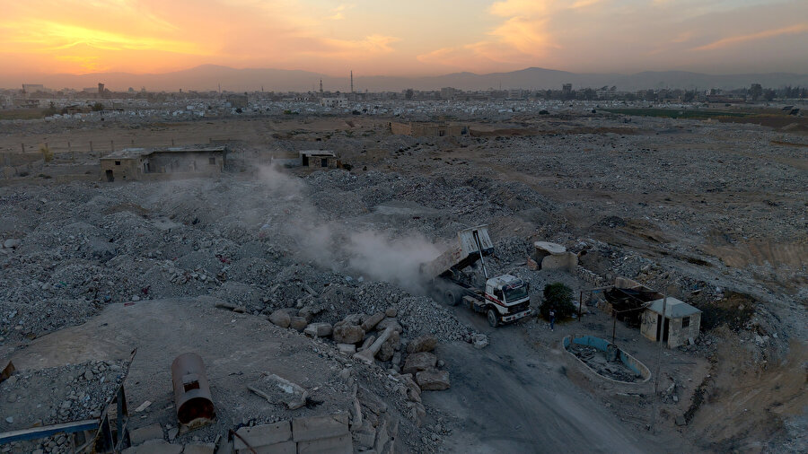 Hüseyin, kullanılan makinelerin normalde taş öğütmek için tasarlandığını ancak burada savaşın bıraktığı enkazı dönüştürmek için kullanıldığını belirtti.