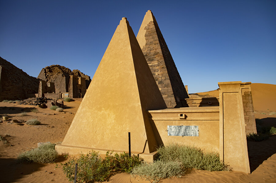 Bölgedeki kalıntılar, piramitlerde Antik Mısır, Yunan ve Roma’nın yanı sıra Kuş Krallığı'nın kendine has mimarisinden izler sunuyor.
