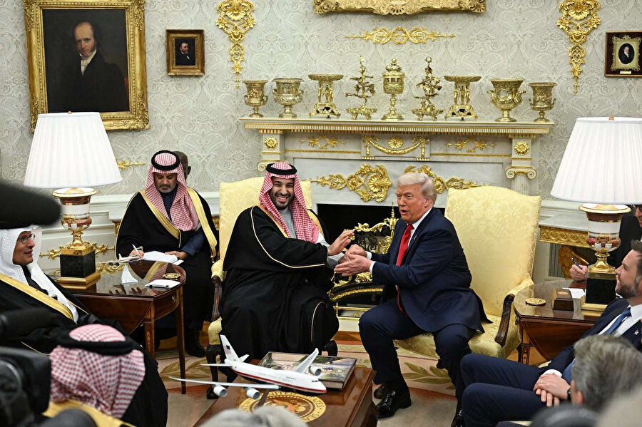 Yaklaşık 7 yıllık bir aranın ardından Muhammed bin Selman'ı ilk kez Beyaz Saray'da ağırlayan Trump, Suudi Arabistan ile harika ilişkilere sahip olduklarını ve Muhammed bin Selman'ın "çok yakın dostu" olduğunu vurguladı.