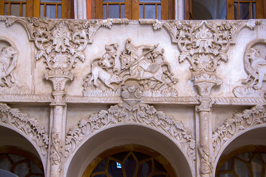 Duvarlardaki çiçek ve meyve şeklindeki alçıdan yapılma detaylar, turistlerin oldukça ilgisini çekiyor.