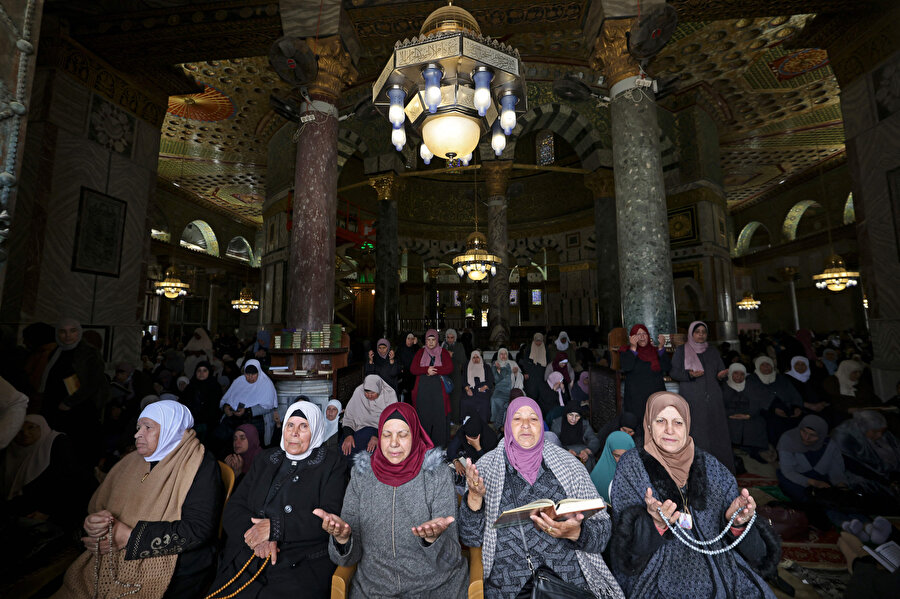 Mescid-i Aksâ’ya 55 yaş ve üzeri erkekler ile 50 yaş üzeri kadınların girişine izin verilirken, İsrail güçleri çok sayıda Filistinlinin girişini de engelledi. Girişine izin verilen binlerce Filistinli ise, Gazze Şeridi’ndeki savaşında gölgesinde Ramazan'ın ilk cuma namazını kıldı.