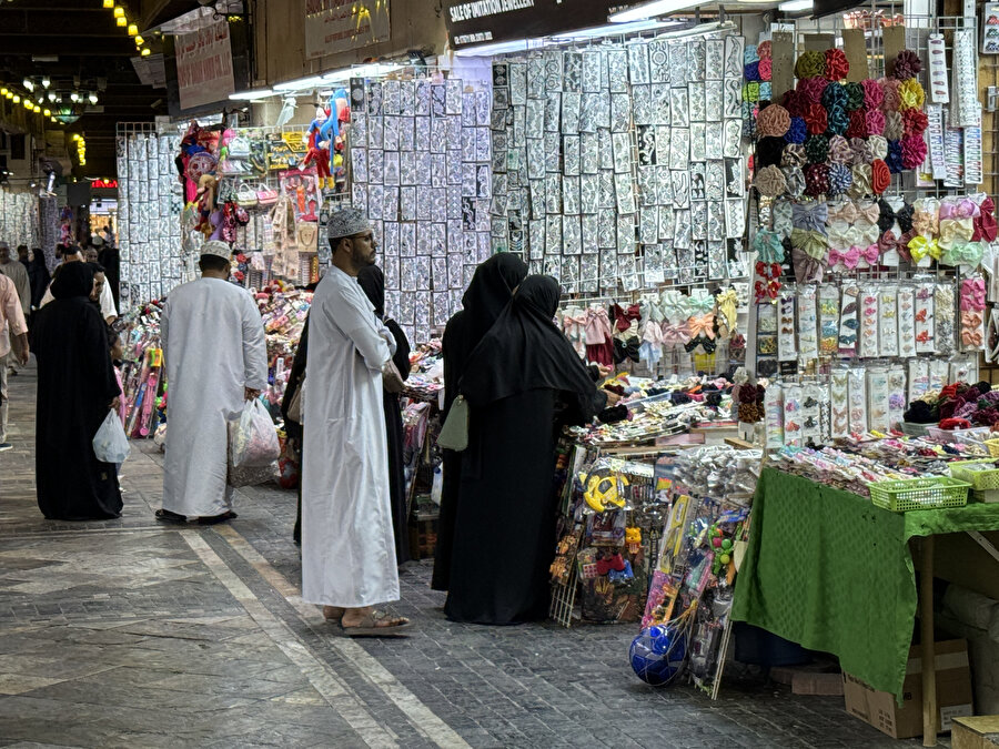Çarşı, ana girişindeki dükkânlardan gelen kokularla ziyaretçilerini karşılarken, Umman kültürüne özgü kumaşlar, kıyafetler, eşyalar ve baharatlar da farklı bir deneyimin kapılarını aralıyor.