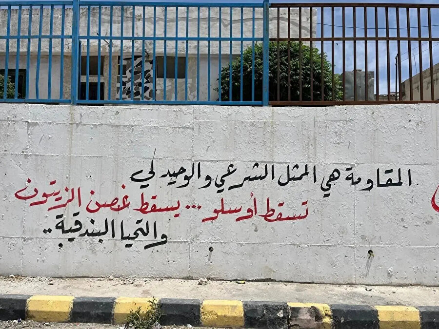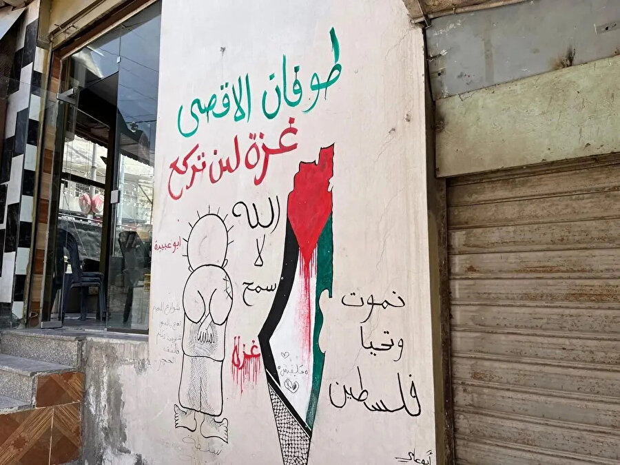 Yine duvarlarda, "Aksa Tufanı.. Gazze boyun eğmeyecek", "Biz ölürüz, Filistin hayat bulur" yazılı grafitiler yer alıyor.