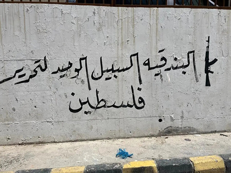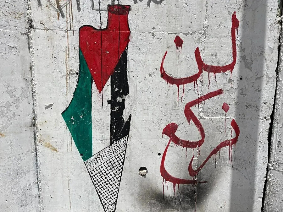 - "Boyun eğmeyeceğiz" yazısıyla Filistin haritası ve Filistin kefiyesinin çizili olduğu resimler, bu grafitilerden bazıları. Bir başka duvarda ise zafer işaretine "Filistin'i kurtarmanın tek yolu, silahlar" yazısı eşlik ediyor.