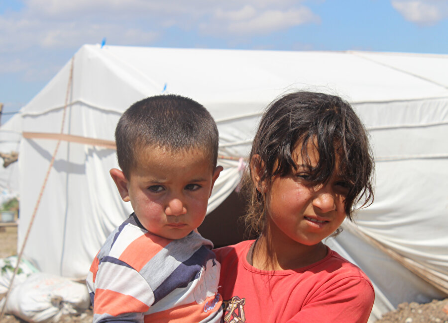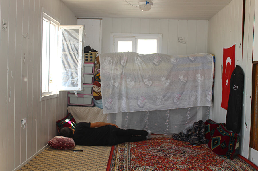 Her çekirdek ailenin konakladığı çadırlar, yanı başına bir buçuk metre kadar genişlikte kurulmuş, zemini çakılla döşenmiş yine çadırdan banyolar, iki direk arasına gerilmiş çamaşır ipleri, odunluk ve hemen önünde kara düzen bir ocakla birbirini tekrar eden bir düzensizlik ardında yaklaşık beş konteynerin yer aldığı bayındır bir alandan ibaret içinde dolaştığım.
