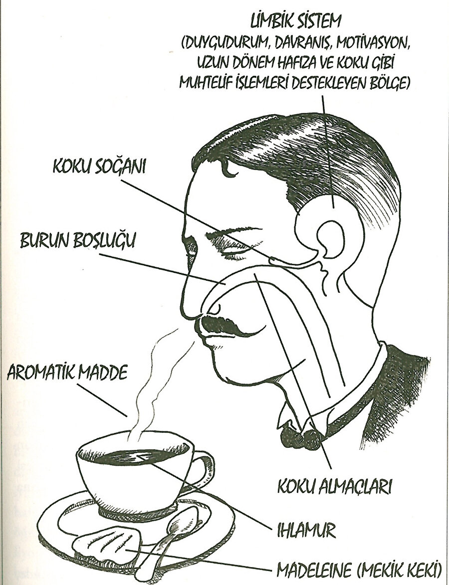 Ondan sonra da o kartı koku bellek bankasının içine yerleştiriyoruz. Sonra o kokuyla tekrar muhatap olduğumuzda -süre önemli değil, beş saat sonra da elli beş yıl sonra da olabilir- o bellek kartını geri çağırıyoruz ve orada yazana benzer bir duygu durum tepkisi göstermeye başlıyoruz. Bellek ve duygu durum, koku duyusuyla beraber beynimizin limbik sistem dediğimiz bölümünde işleniyor.