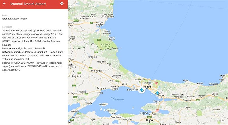 Kablosuz internet noktaları, özellikle sık sık yurt dışına çıkıp seyahat edenler için büyük önem taşıyor. Zira bu sayede kullanıcılar, mobil kotadan harcamak yerine ücretsiz Wi-Fi bağlantılarından yararlanabiliyor. Güvenlik sistemi mühendisi Anıl Polat, dünya genelinde ücretsiz olarak kablosuz internet bağlantısı sunan tüm havalimanlarının haritasını oluşturdu. Üstelik haritada Wi-Fi şifreleri de görüntülenebiliyor.