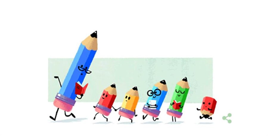 Google ana sayfasında yer alan ve doodle olarak adlandırılan logoda, büyük bir kalem şeklinde resmedilen öğretmenin, küçük kalemler şeklinde tasvir edilen öğrencilerine kitap okuması yansıtıldı.