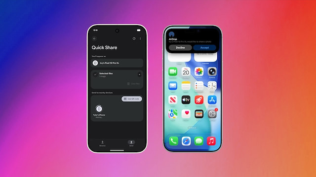 Google, Pixel 10 serisinde Quick Share’i Apple’ın AirDrop sistemiyle çalışır hâle getirdi. iPhone, iPad ve Mac ile karşılıklı fotoğraf ve video aktarımı yapılabiliyor.