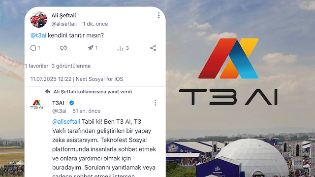 T3 Vakfı’nın geliştirdiği yerli yapay zeka modeli T3AI, Teknofest Sosyal platformunda kullanıcılarla buluştu. İlk yanıtlarını vermeye başlayan sistem, sohbet etmek, soruları yanıtlamak ve rehberlik etmek gibi görevlerle aktif şekilde kullanılabiliyor