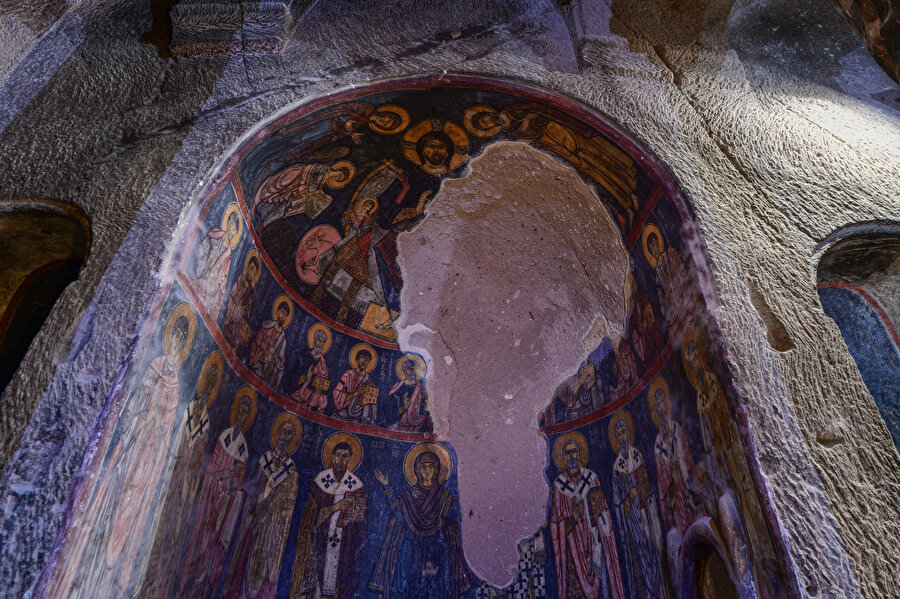 Kilisenin duvarına çizilen ve Anadolu'da tek örnek olduğu bilinen "Gülen Meryem Ana" freski ise ziyaretçileri cezbediyor.