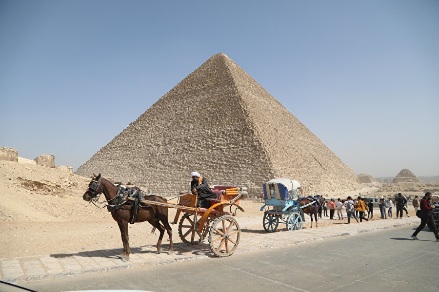 Dünyanın Yedi Harikası'ndan biri olan Keops Piramidi, 140 metre yüksekliğinde ve Giza piramitlerinin en büyüğü.