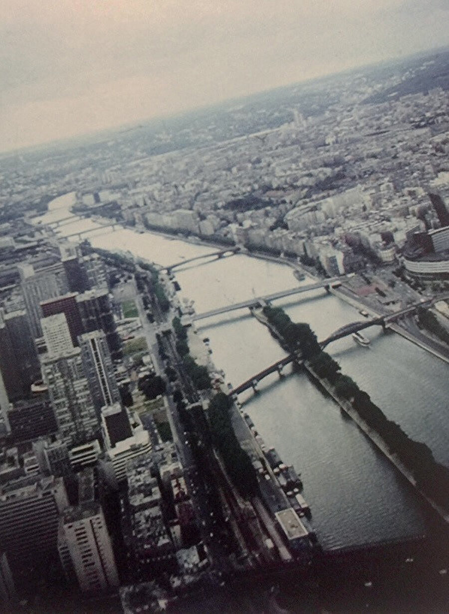 Eyfel kulesinin tam tepe noktasından Seine nehri ortasındaki Kuğular Adası’nın görünüşü.