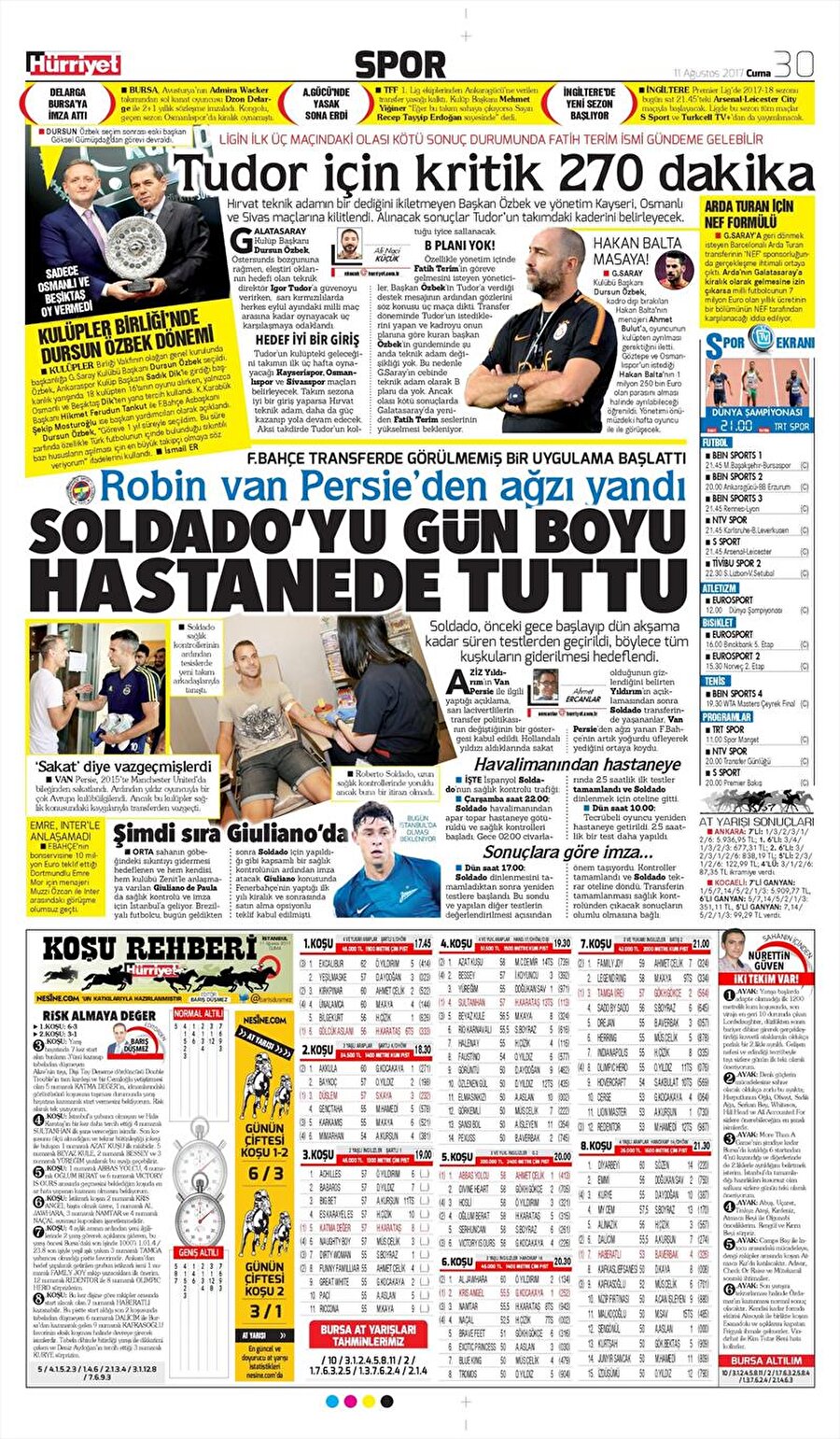 11 Ağustos tarihinde gazetelerde yer alan spor manşetlerini sizler için derledik.