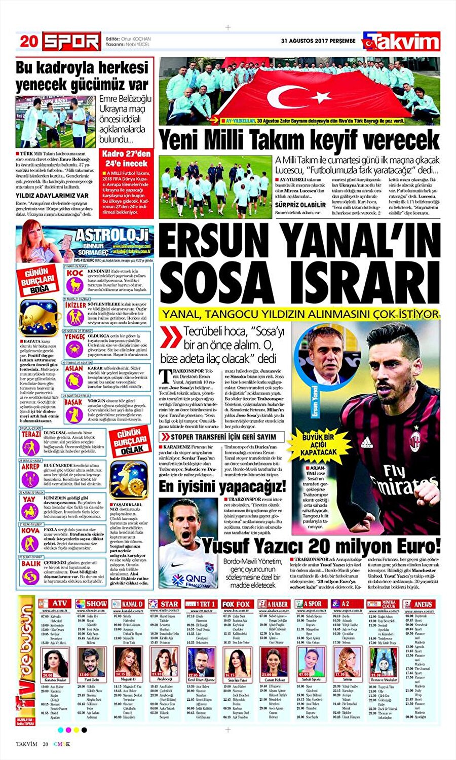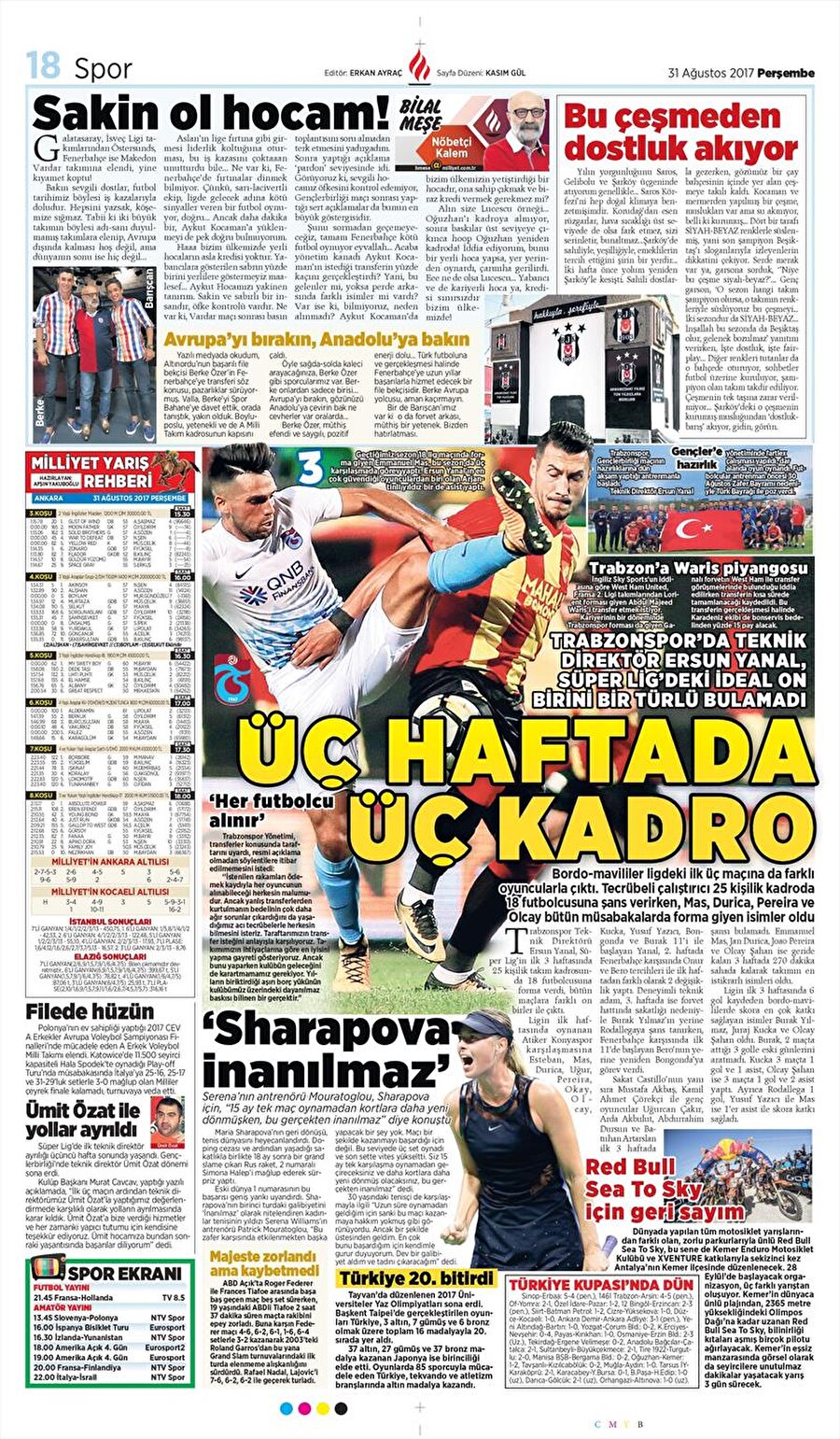 31 Ağustos tarihinde gazetelerde yer alan spor manşetlerini sizler için derledik.