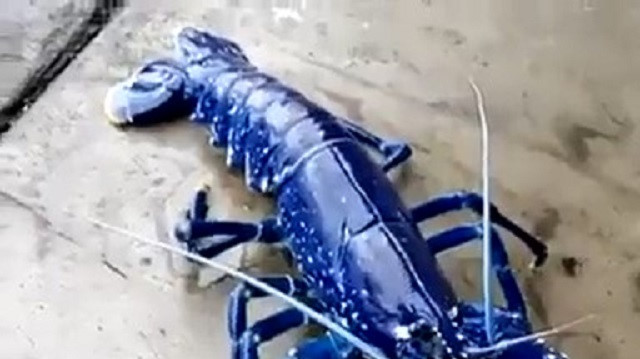 Nadir görülen mavi ıstakozun ilginç görüntüleri .