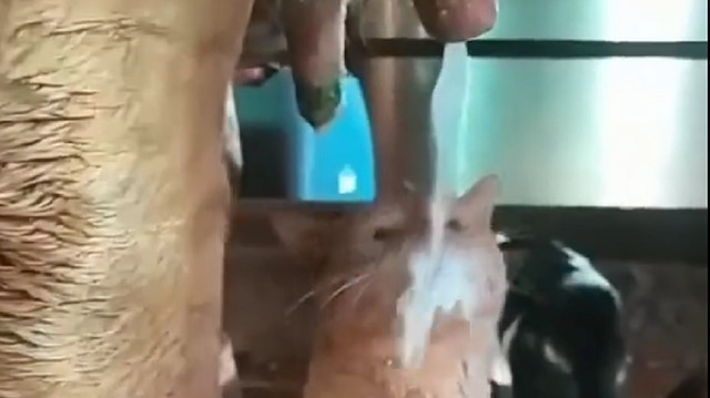 Sütün aktığını fırsat bilen kediler..