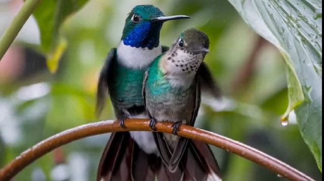 Şiddetli yağmurda sığınan iki sinek kuşu ❤
