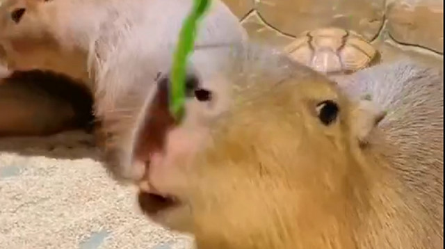 Kapibaranın yemeğini ağzıyla yakalamaya çalışırken ki hali. 🤣😍
