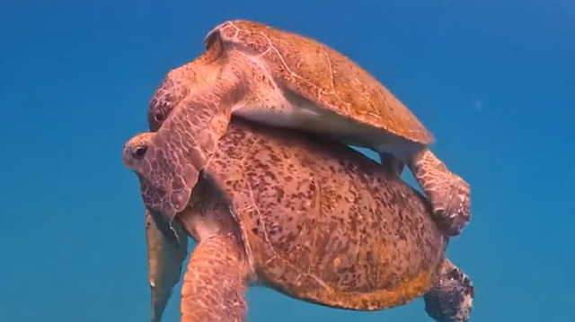 Su altında kaplumbağaların gösterisi..