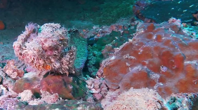 Kamufle olmuş sakallı akrep balığı, bir kaya ya da mercanın tıpatıp aynısı gibi göründükleri için onları eğitimsiz bir gözle fark etmek neredeyse imkansızdır.