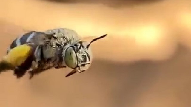 Güzel arının, başının gövdeden bağımsız muhteşem stabilizasyonu videoda.