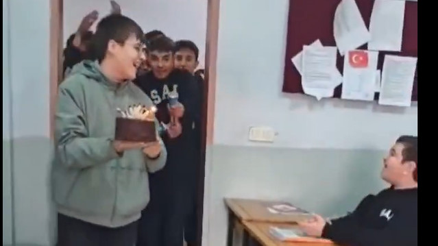 Manisa'da bir lisede çekilen görüntüler, gençlerin içtenliğini ve arkadaşlık bağlarının ne kadar güçlü olabileceğini yeniden hatırlattı. Okulun en efendi, en sakin öğrencilerinden biri olarak bilinen Halil Emin Karakoç için hazırlanan sürpriz, sınıfın atmosferini bir anda değiştiriyor. Kapıdan içeri giren arkadaşlarının elindeki pasta ve yüzlerindeki heyecanlı gülümseme, samimi bir bağın en güzel kanıtı oluyor.