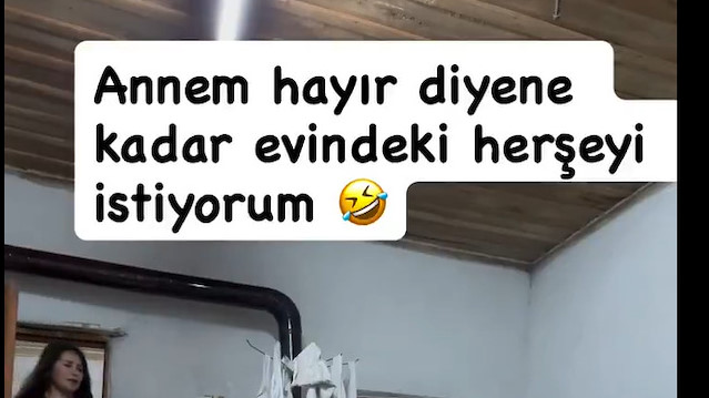 Paylaşılan videoda genç bir çocuk, annesinin sabır sınırlarını test etmeye kararlı şekilde evdeki her şeyi istemeye başlıyor. Bir bardak, bir yastık, bir çikolata, hatta kapının önündeki terlik… Genç ne görüyorsa “Anne bunu istiyorum” diyerek sırayla talep ediyor. Annesi ise her istekte kısa bir duraksıyor; yüzündeki hafif tebessüm, çaresizlikle karışıyor. Dillerde bir “hayır” yok ama o sessizlik çok şey anlatıyor. Bir anne, çocuğunu kırmak istememekle sınır çizmek arasında gidip geliyor adeta.